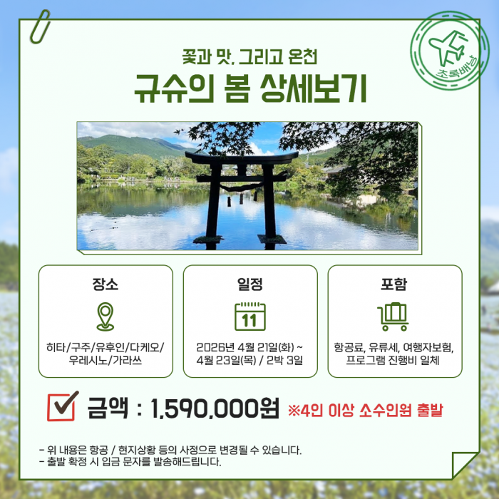 걷는 곳마다 봄이 되는 규슈의 깊은 매력을 만나보세요.