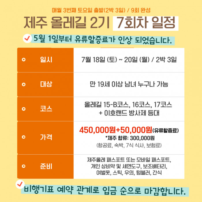 2026 제주올레길 2기 ★7~9회차 요약정보 및 구매