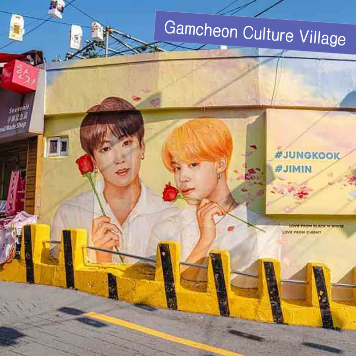 "The Santorini of Korea & The Jimin-Jungkook Mural" Known for its cascading houses and street art, this is Busan's most iconic landmark.