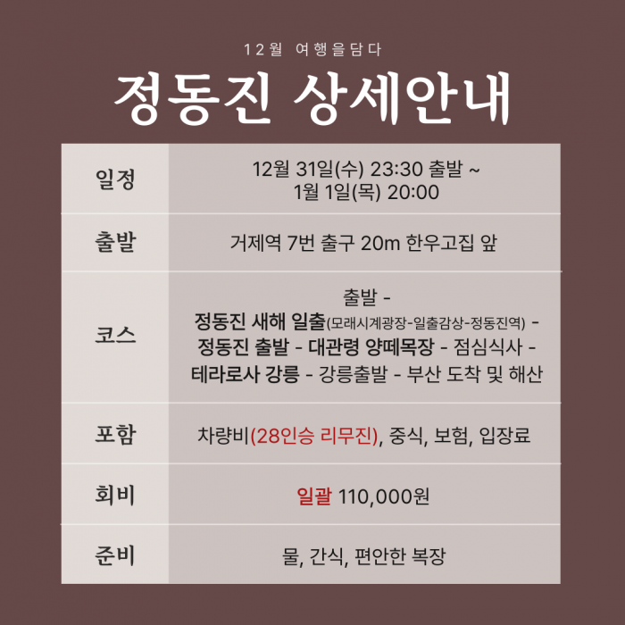 • 정동진 새해 일출여행 / 12월 31일(수)~1/1(목)