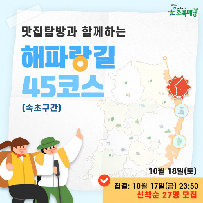 해파랑길 45코스 초록배낭트레킹 - 속초 (10월18일(토)) > 시그니처