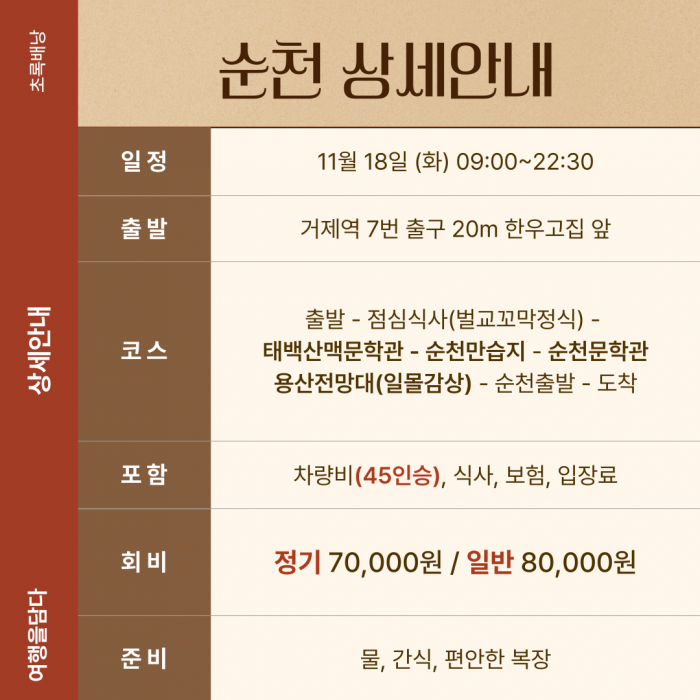 [11월&여기] 인문투어 순천 / 11월 18일 (화) 요약정보 및 구매