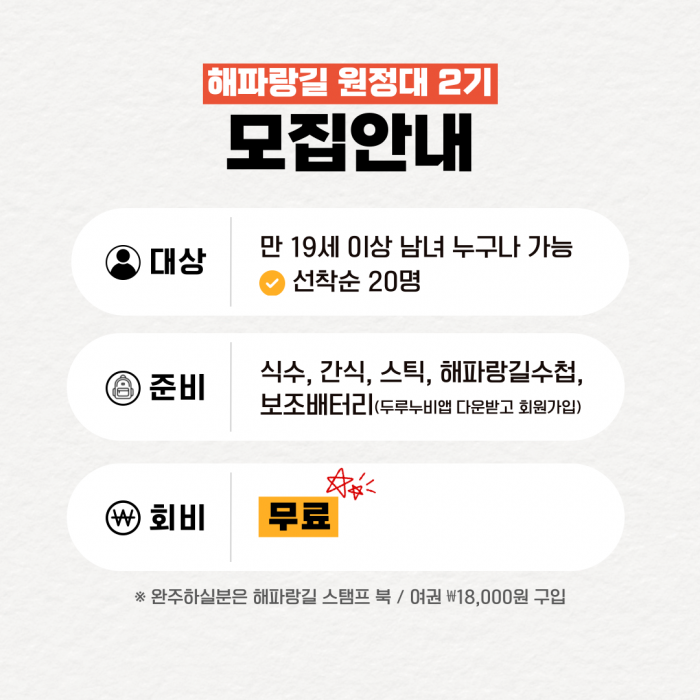 ★무료★ 2026 해파랑길 원정대 2기(1~3코스) 요약정보 및 구매