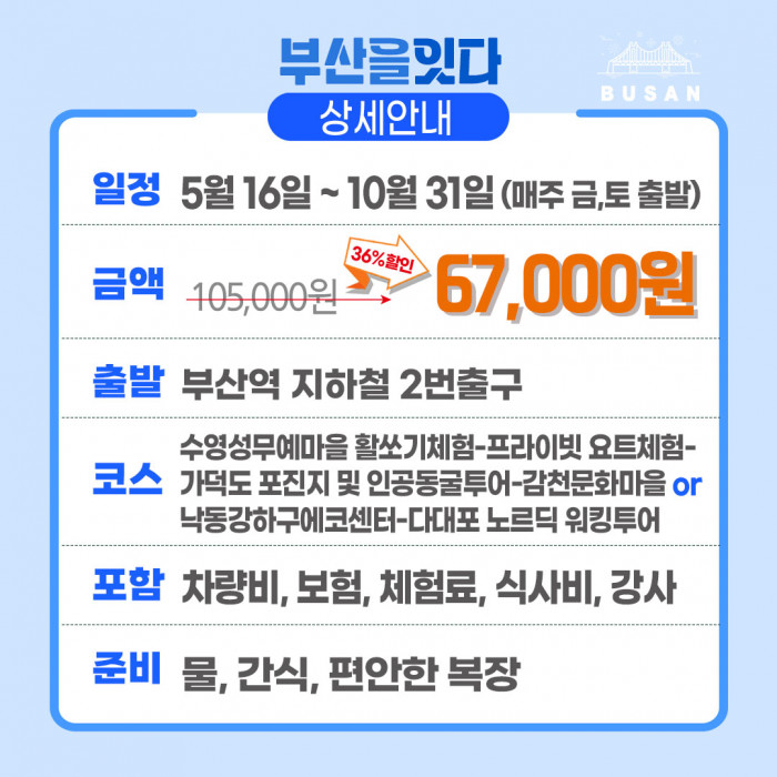 부산 로컬 체험여행 | 활쏘기+요트+노르딕워킹 1일체험 부산을 잇다(매주 금,토 출발) > 부산
