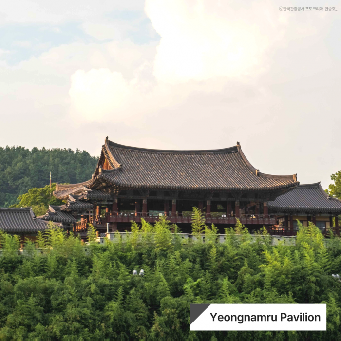 Yeongnamru Pavilion is one of the greatest wooden architecture from late Joseon Dynasty, with 5 blocks in the front,