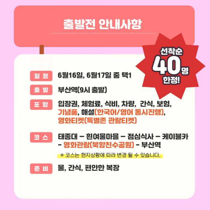 토크콘서트와 함께하는 부산 당일여행 패키지 !!