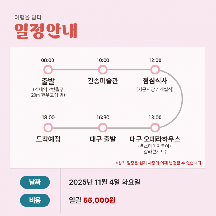 또 한 번의 기회 '대구' 문화예술기행 11월 4일 (화) 요약정보 및 구매